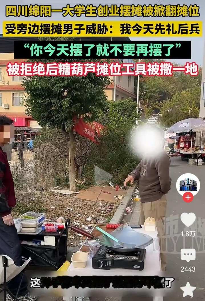 这场冲突看似是摆摊地盘之争,实则戳中了大众对“公平竞争”和“尊重劳动”的共识。大学生放下身段勤工俭学,靠双手打拼的模样值得点赞;而老摊主为保住客源,用暴力手段排除竞争,不仅违背商业道德,更触碰了法律红线。正如网友所言:“市场竞争靠的是口碑和服务,不是耍横耍狠,欺负学生算什么本事?”